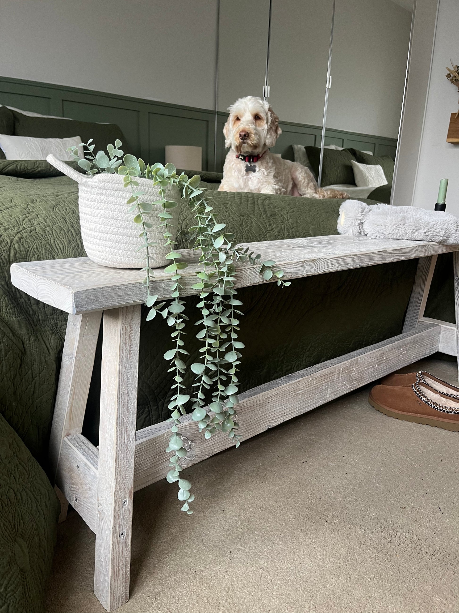 Expertly crafted from reclaimed scaffold boards, this rustic end of bed bench adds a unique and beautiful touch to any bedroom. Made with expert craftsmanship, this bench is both stunning and functional. Elevate your bedroom design with this one-of-a-kind piece.